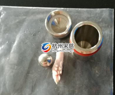 1.要先取1個大鼠的腳板放進到鋼罐里再在其添加配套設施的研磨珠。2.把含有試品的鋼罐放進到液態(tài)氮中進行冷藏。3.再把鋼罐放進多樣品組織研磨儀設備的適配器中。4.把研磨設備的參數按要求設置。5.研磨程序結束后 ,就可以獲得樣本了,如下圖所示。